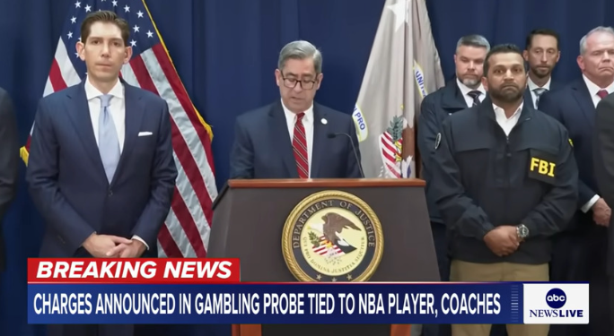 FBI通过“真图行动”和“网中行动”在11个州联合逮捕30多名嫌疑人,包括现役NBA球员、教练和有组织犯罪成员。迈阿密热火队后卫特里·罗齐尔、波特兰开拓者队主教练昌西·比卢普斯及前球员兼教练达蒙·琼斯均被指控。调查发现涉案人员利用球员伤病、上场时间等非公开信息传递给犯罪同伙,下注数十万美元,并通过加密货币洗钱。法庭文件显示,多场NBA比赛涉嫌被操纵,包括2023年黄蜂队对鹈鹕队等比赛。