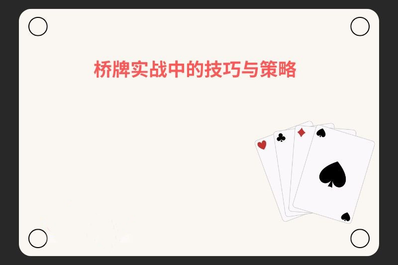桥牌实战的关键在于叫牌阶段的决策。在这个阶段,玩家需要考虑手中的牌型、牌力以及潜在的配合可能性。重要的是要建立一个合理的叫牌系统,明确自己和搭档的叫牌意图,同时警惕对手的可能行动。在打牌阶段,要根据叫牌信息和对手的出牌来调整自己的打法,灵活运用技巧和策略。总体而言,桥牌实战需要玩家有深厚的牌技基础,敏锐的观察力和逻辑思维能力,以及良好的沟通和配合能力。通过不断的实战经验积累和总结,不断提升自己的水平。