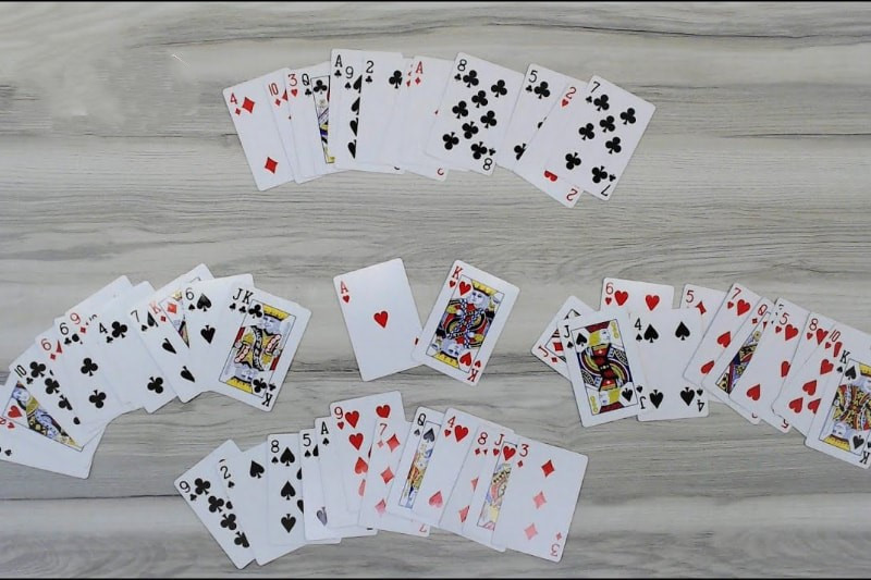桥牌使用52张牌,不使用鬼牌,每场游戏四位玩家,每人发13张牌。对面坐着的玩家是你的同伴,左右方的玩家是你们俩人的对手,四个人依照所坐位置的不同,分别称为东家、南家、西家、北家,游戏由顺时针方向进行。