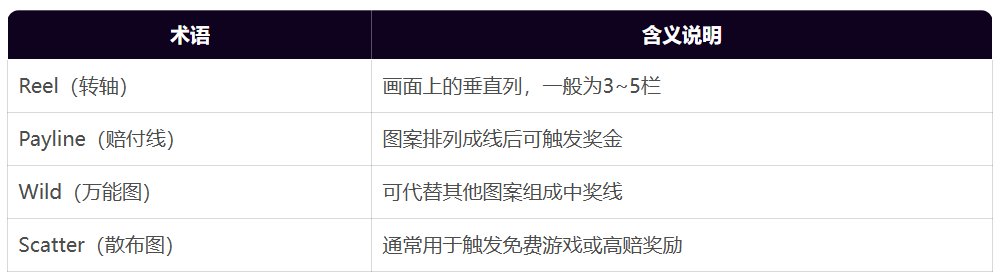 老虎机的基本玩法是在 reels(转轴)上转动图案,排列特定图案组合即可获胜。